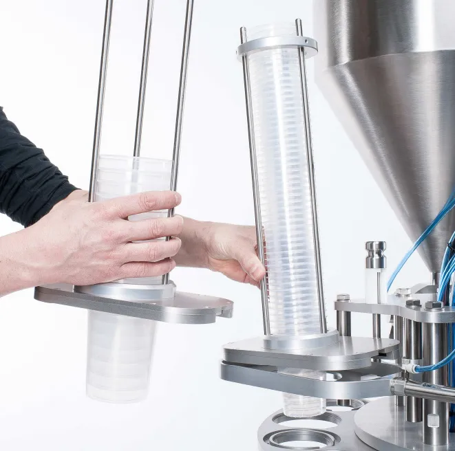 - Bis zu 1500 Becher/h (je nach Produkt und Abfüllmenge)
