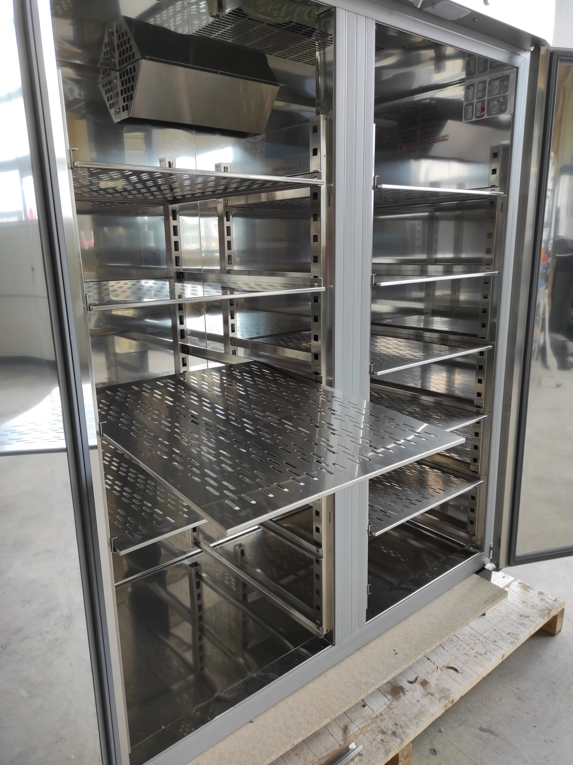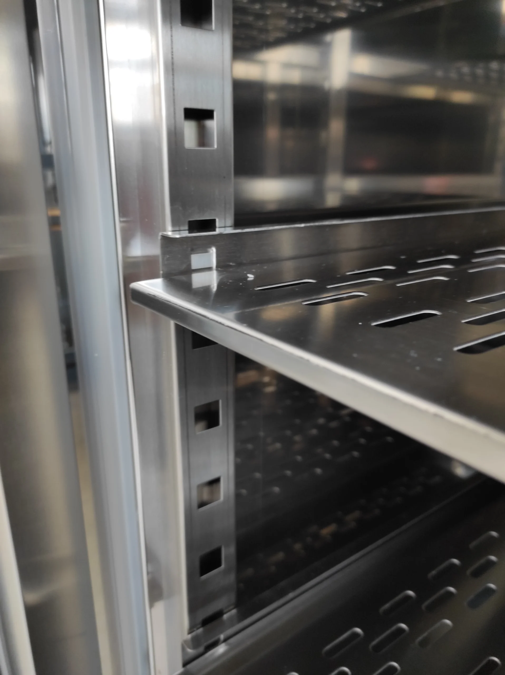 - Anzahl der Einlegeböden: 4 – 8 (perforiertes Inox-Gitter, 650x530mm)