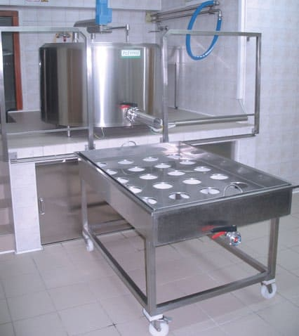 • Tisch für direkte Abfüllung der Käsemasse in die Käseformen